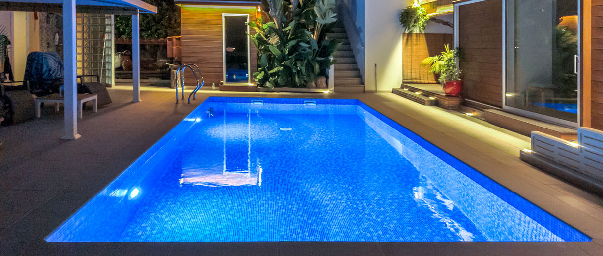 Der beheizte Pool der Casita Salpino bietet Entspannung mit traumhaftem Meer- und Gartenblick. Dank der Gegenstromanlage ist er auch perfekt für sportliches Schwimmtraining geeignet.